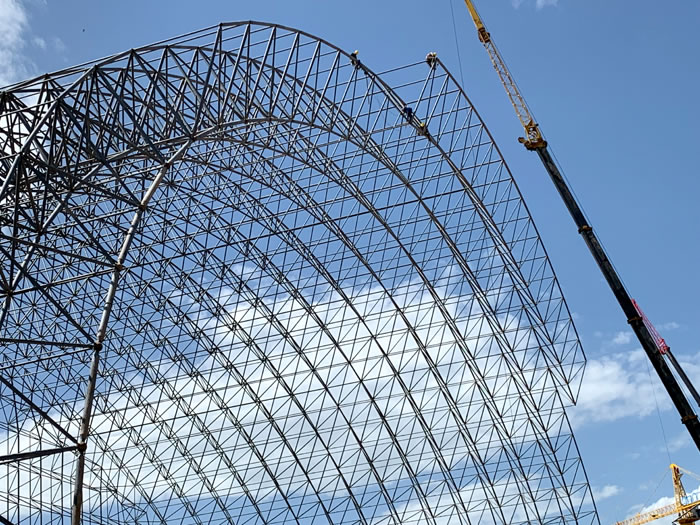 (2)网架加工前应对现场尺寸进行复测,确认无误后方可进行加工、安装;网架制作、运输、安装应遵守《空间网格结构技术规程》JGJ7-2010、《钢网架兴义螺栓球节点》JG/T 10-2009、《钢网架兴义螺栓球节点用高强度螺栓》 GB/T 16939-2016、《兴义钢结构兴义工程兴义施工规范》 GB50755-2012、《兴义钢结构兴义工程施工质量验收标准》 GB50205-2020。